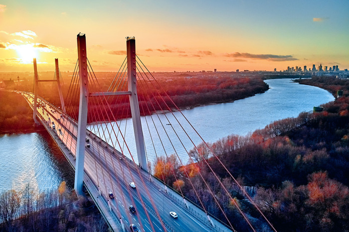 Leinwandbild Brücke In Warschau Beim Sonnenuntergang