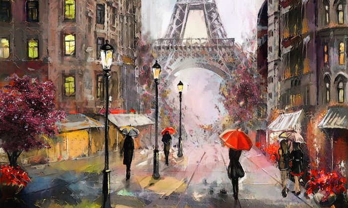 Mehrteiliges Bild Ansicht Der Straße Von Paris Wie Gemalt