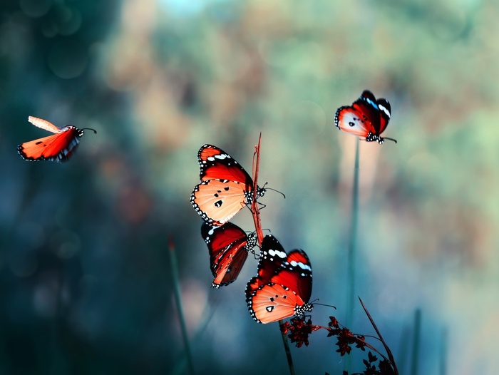 Mehrteiliges Bild Bunte Schmetterlinge Im Makromaßstab