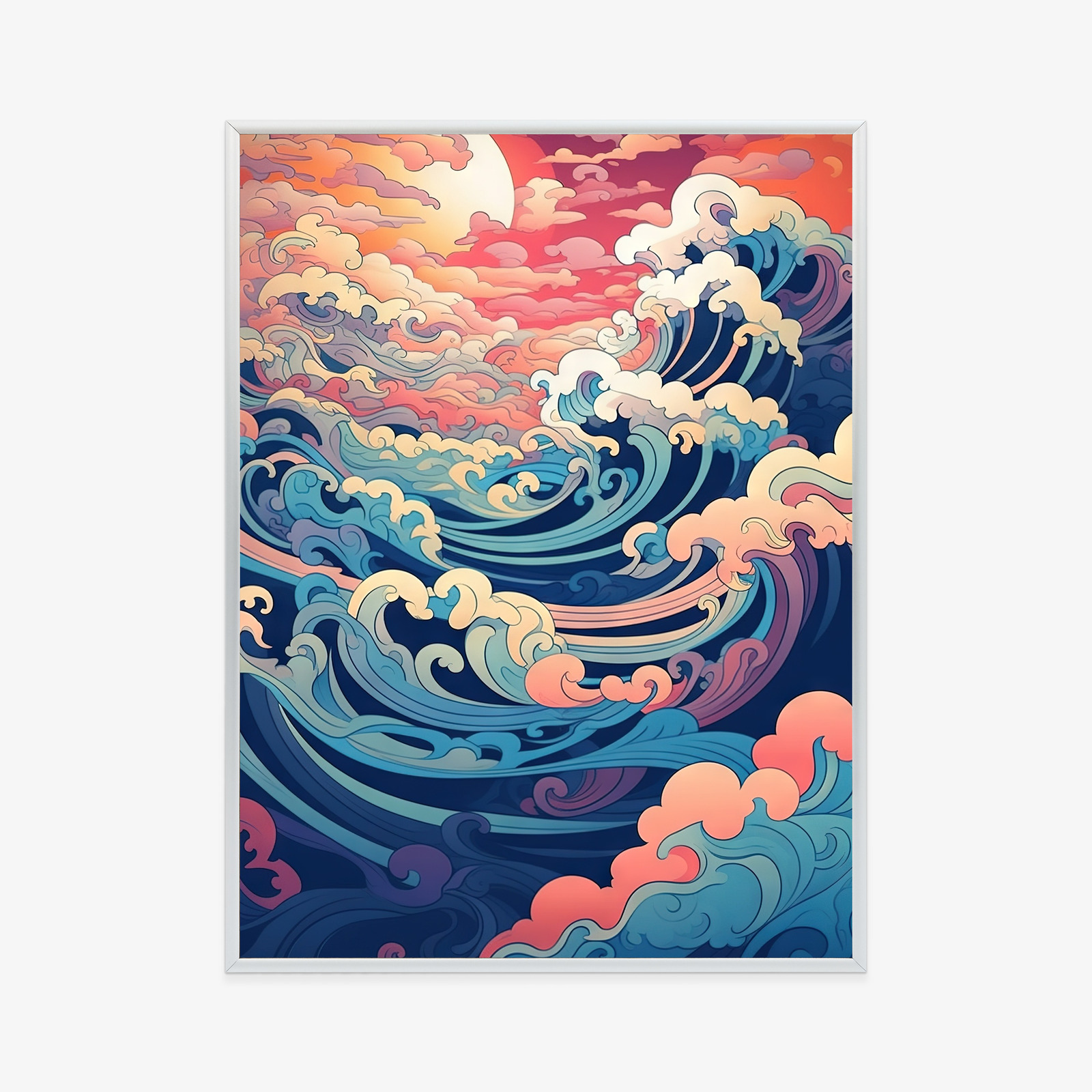 Schreibe die erste Rezension für „Poster Abstrakte Landschaft Mit Meereswellen Und Sonnenuntergang“