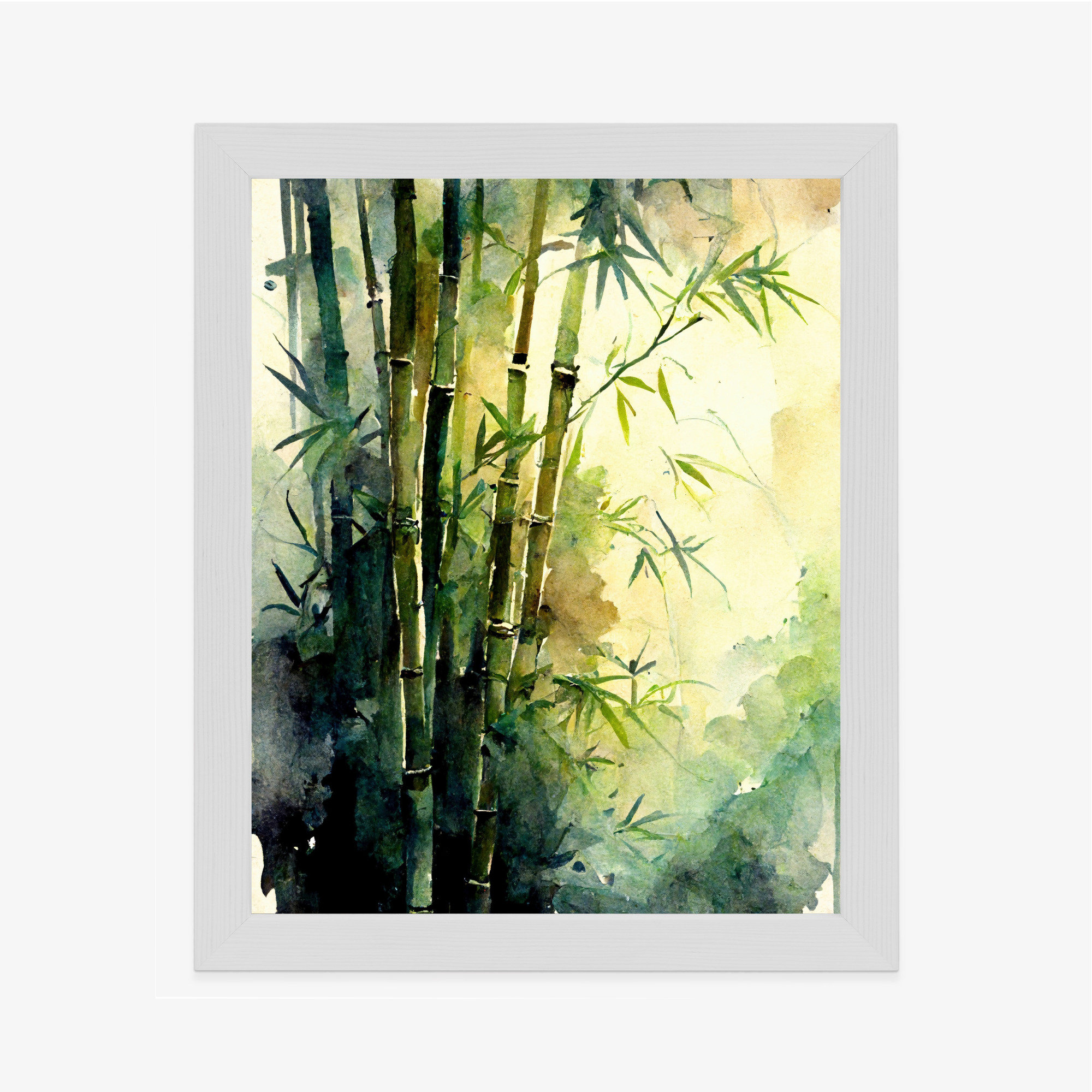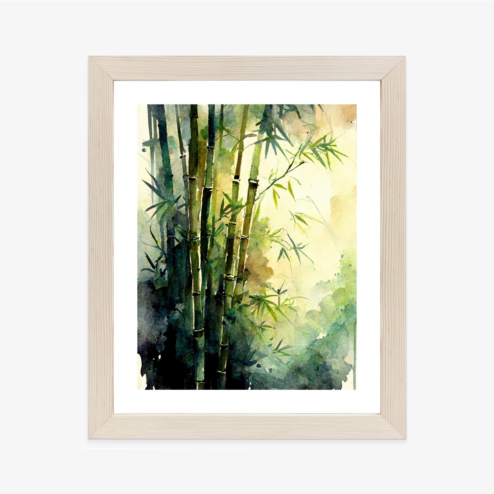 Poster Aquarell Bambuswald Rahmen Holz Mit Passepartout Farbe Natürlich