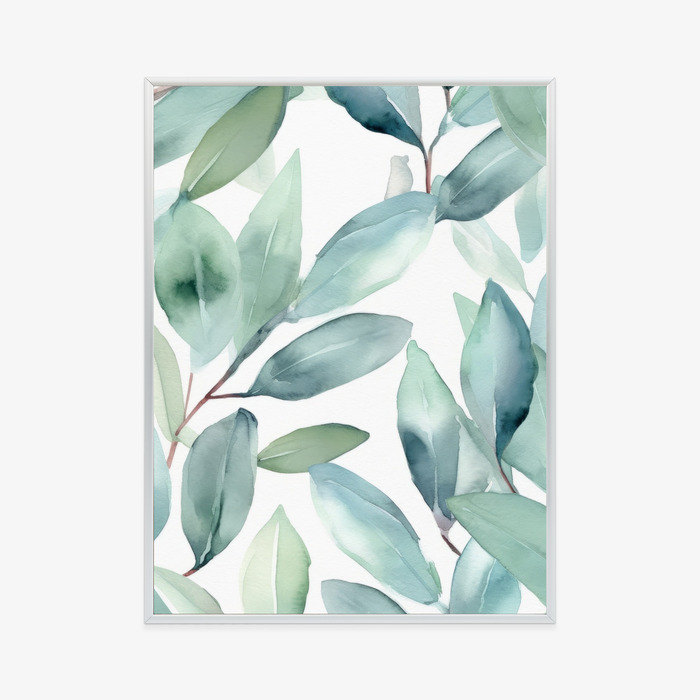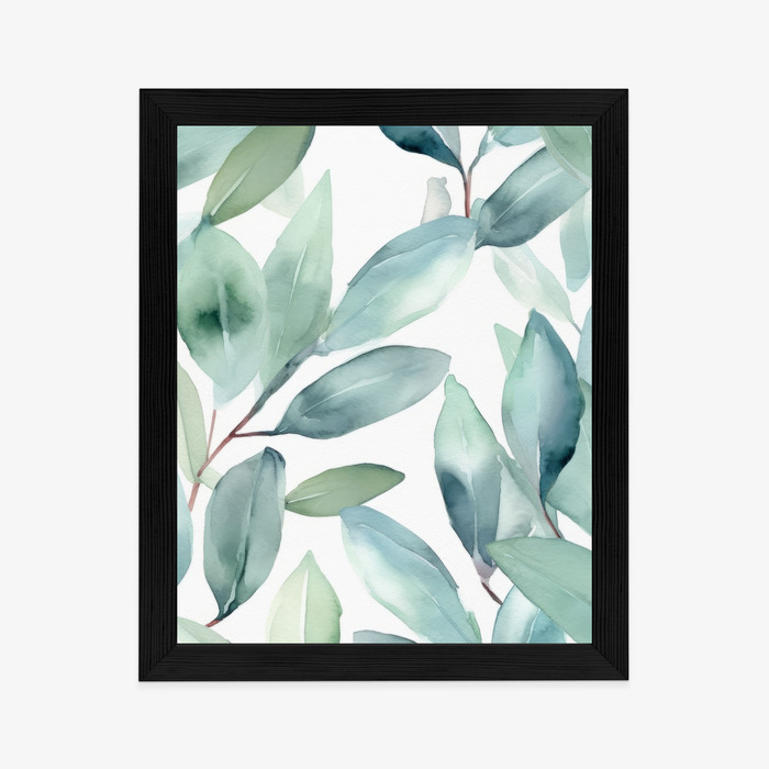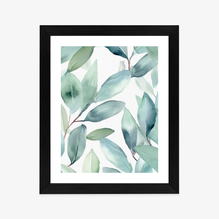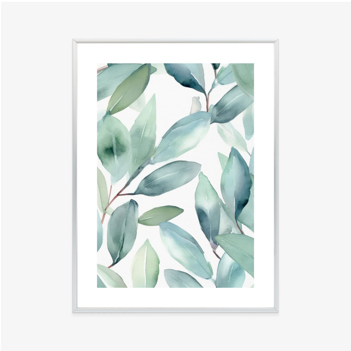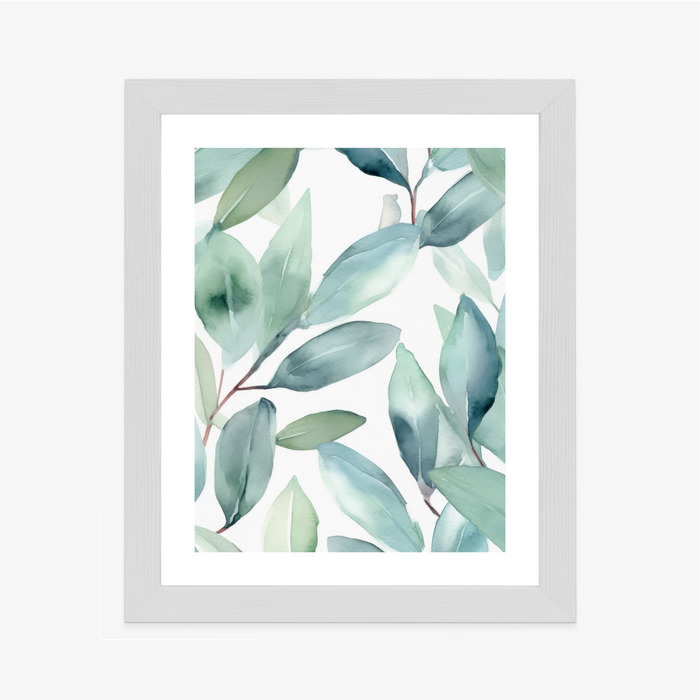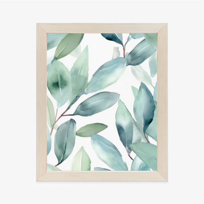 Poster Aquarell-Lorbeerblätter Rahmen Holz Mit Passepartout Farbe Natürlich
