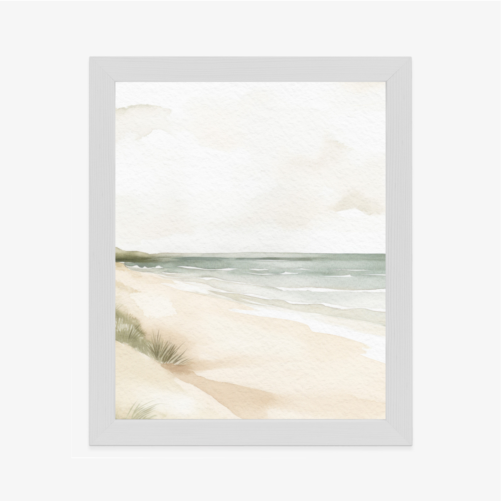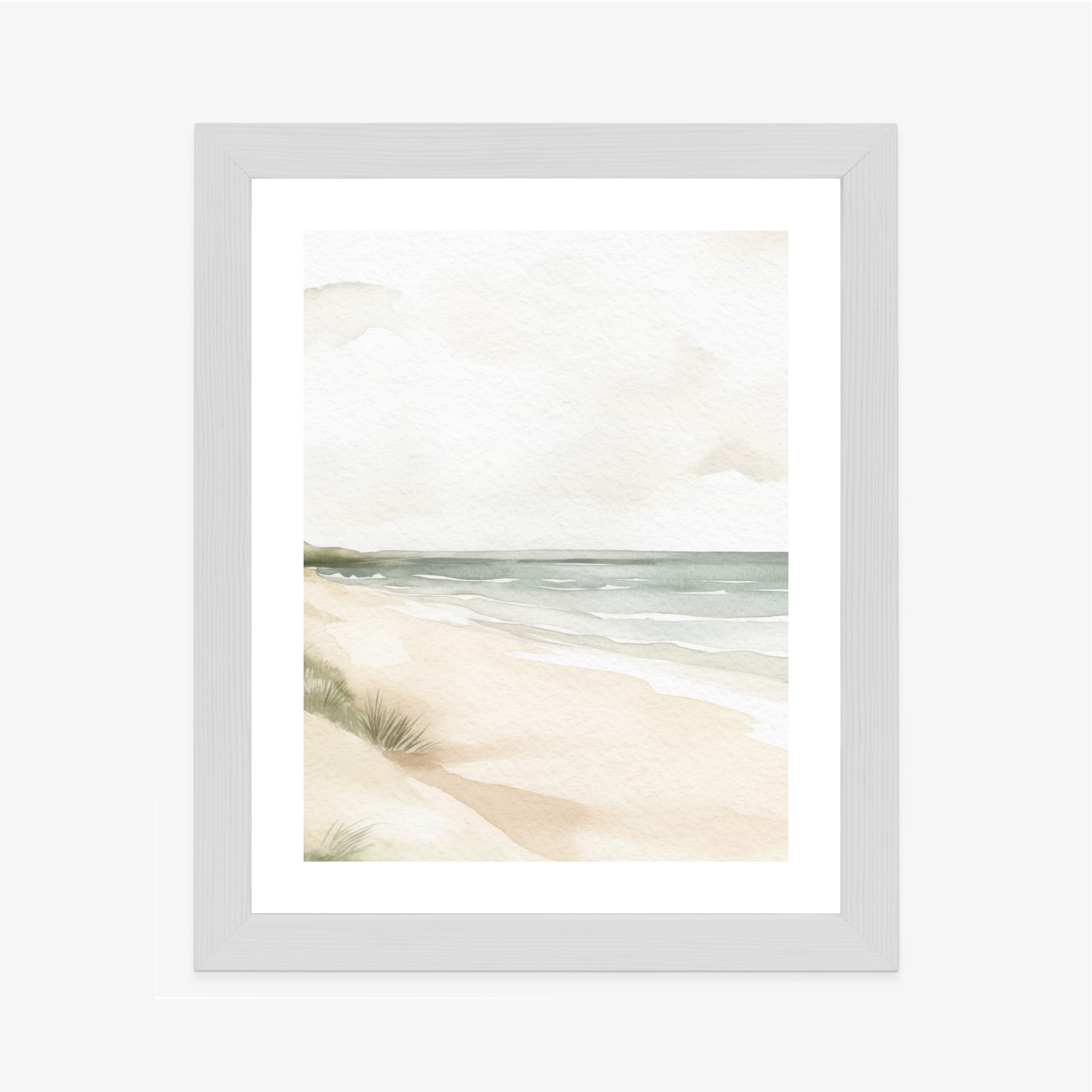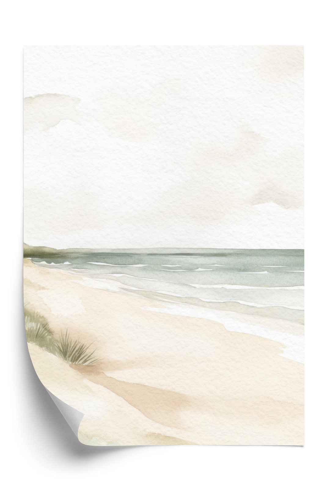 Poster Aquarelllandschaft Mit Strand Und Meer Rahmen Holz Mit Passepartout Farbe Natürlich