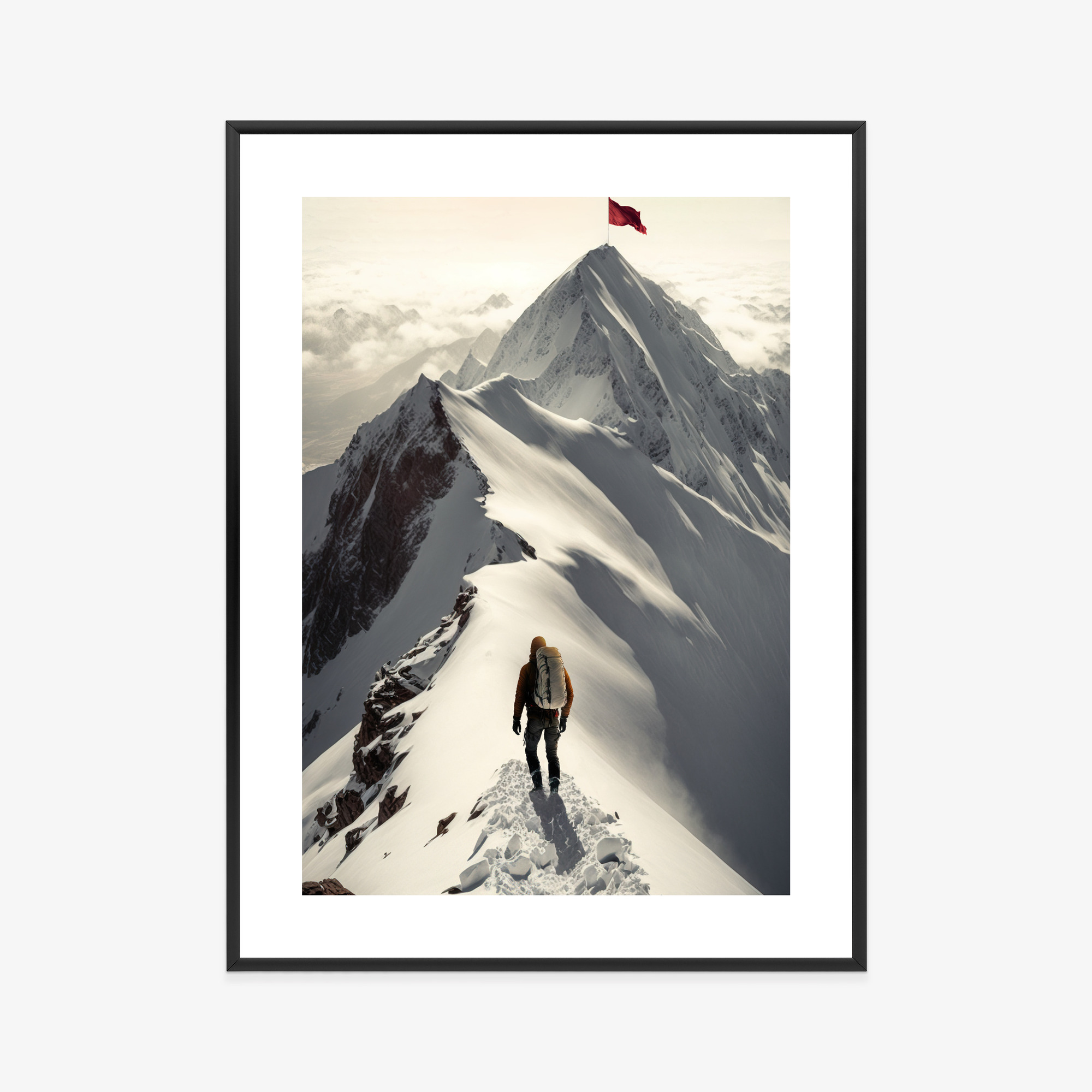 Poster Bergabenteuer Auf Dem Gipfel Rahmen Holz Mit Passepartout Farbe Natürlich