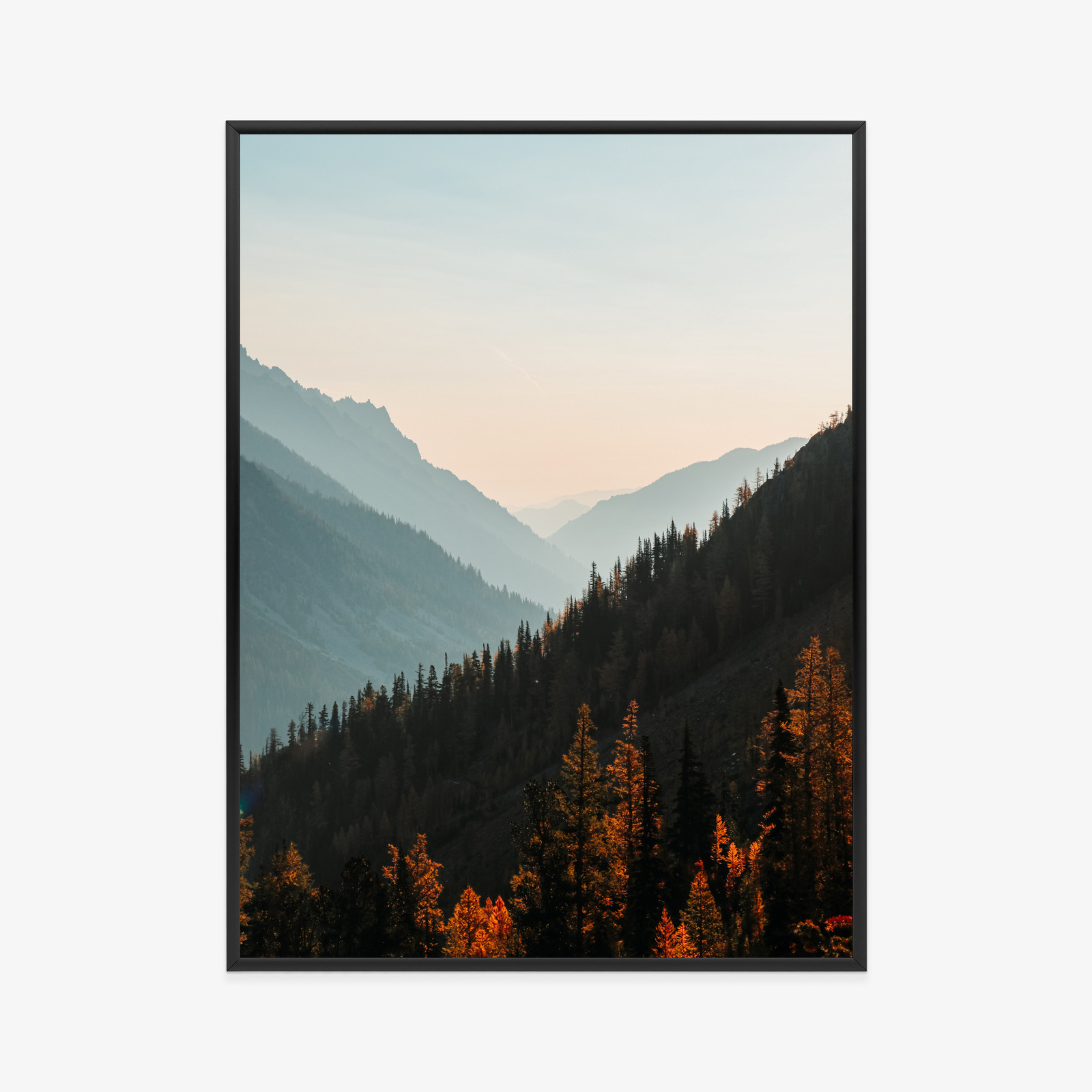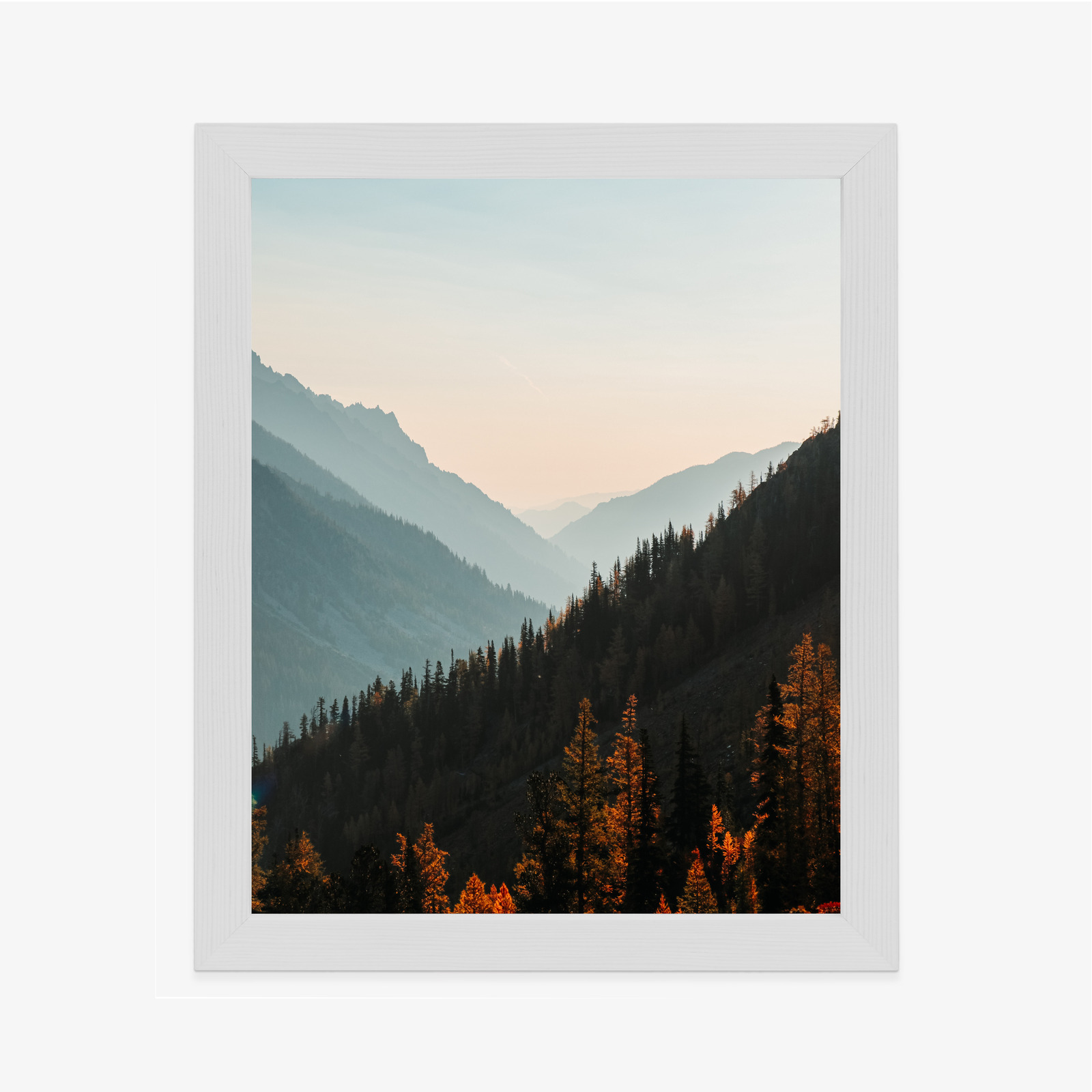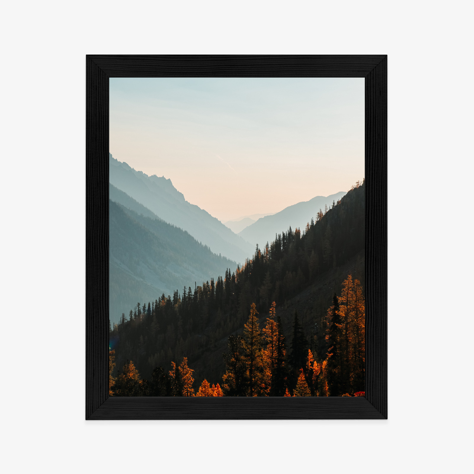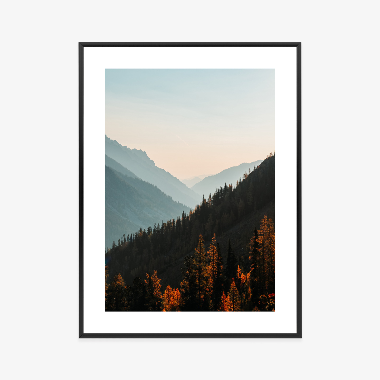 Poster Bergblick Bei Sonnenuntergang Rahmen Holz Mit Passepartout Farbe Natürlich