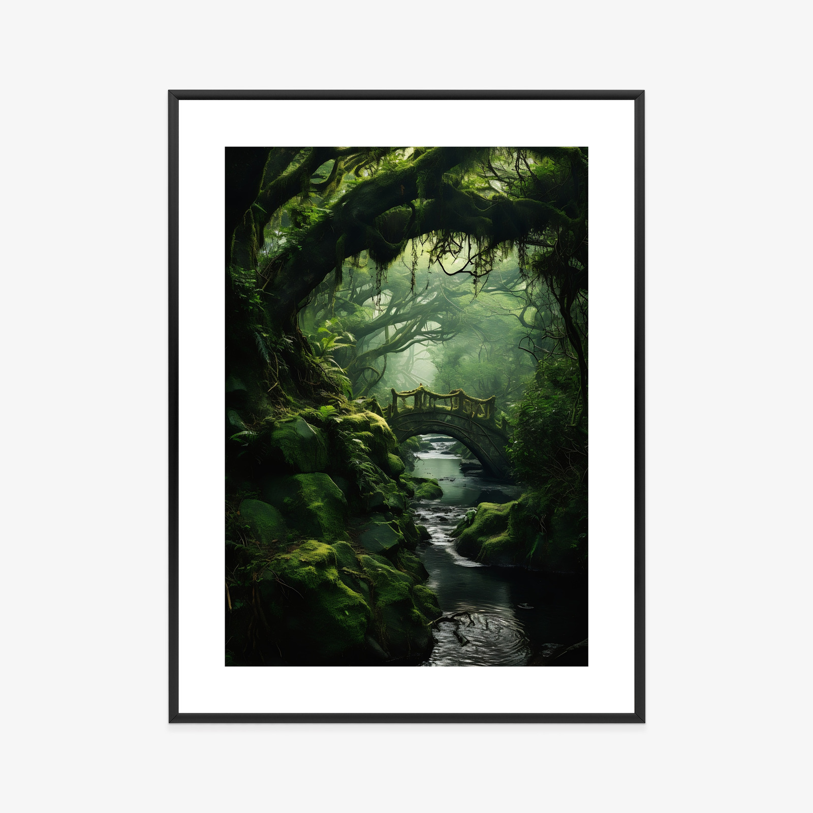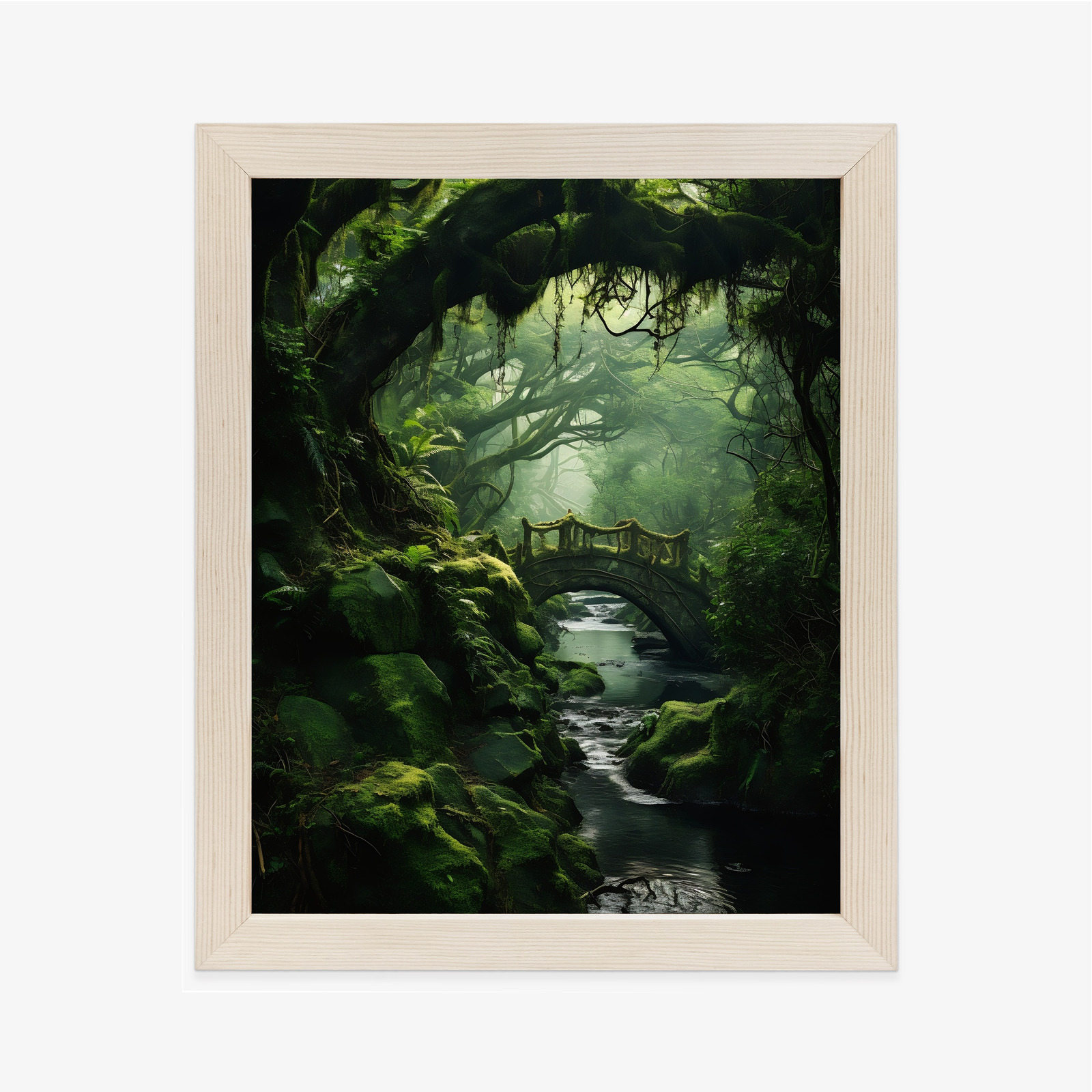 Poster Brücke Und Fluss Im Grünen Dschungel Rahmen Holz Mit Passepartout Farbe Natürlich