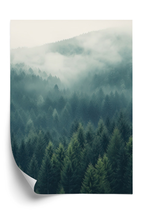 Poster Dichter Nebel Hängt Über Dem Grünen Wald