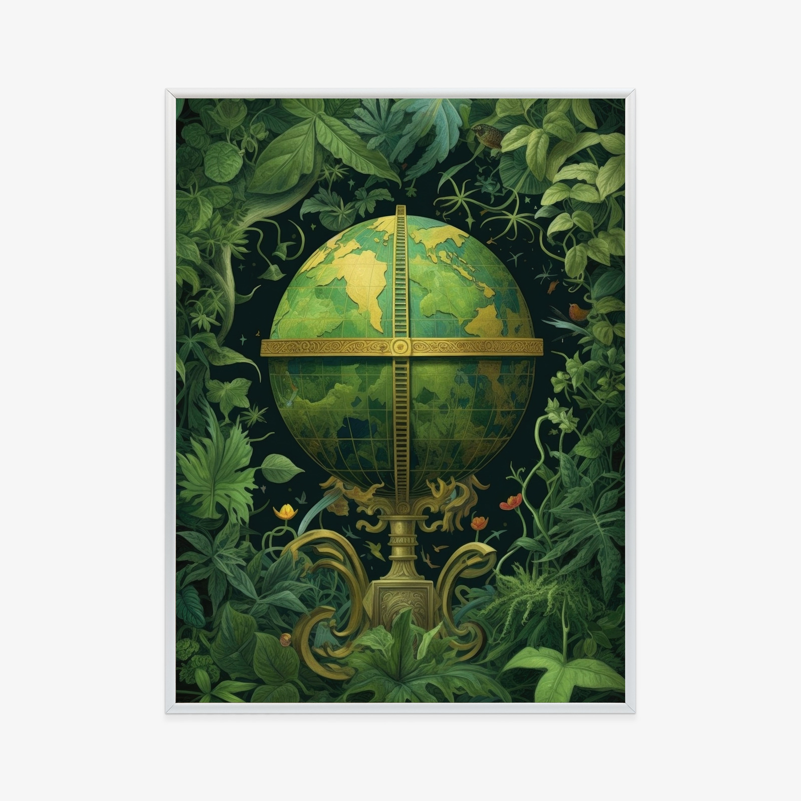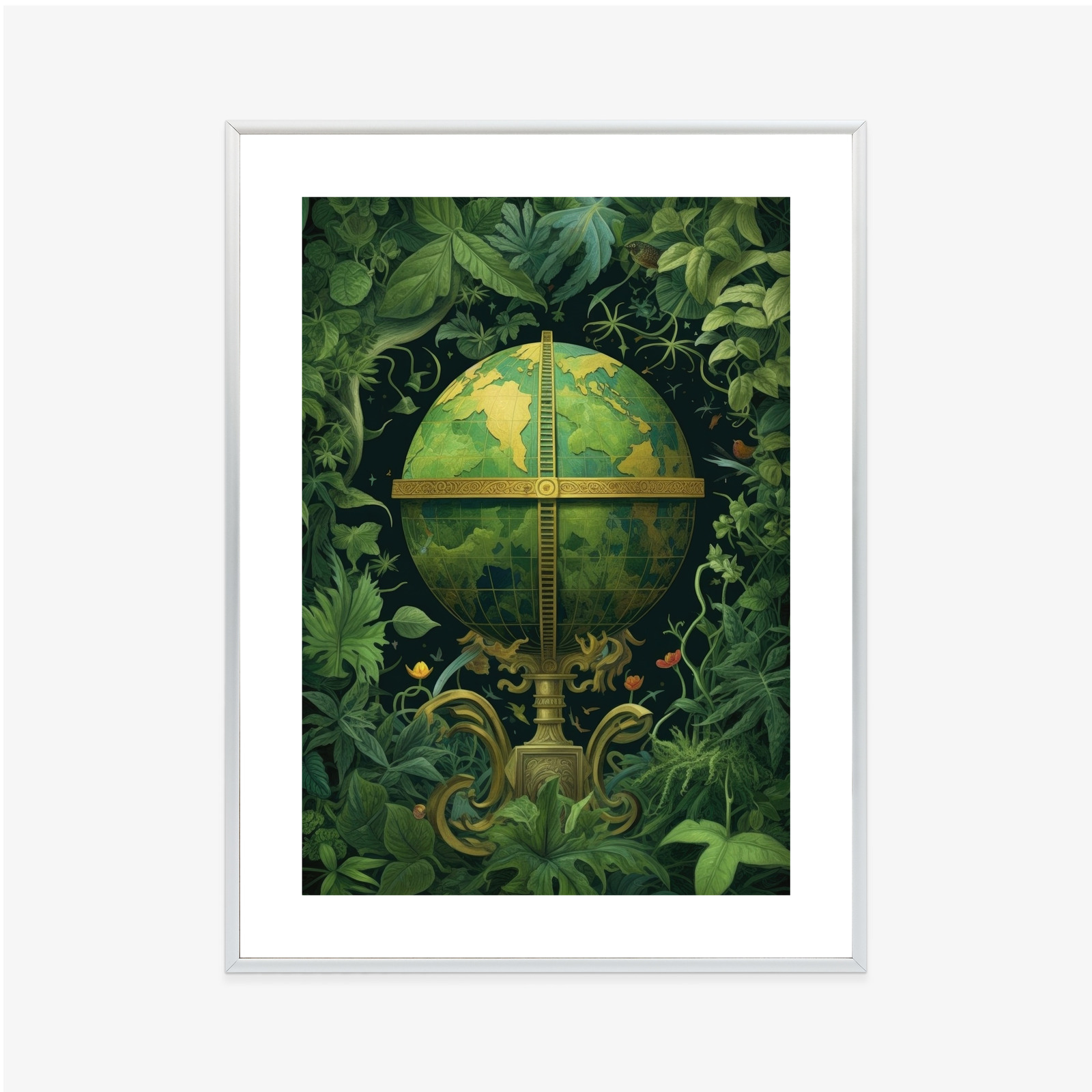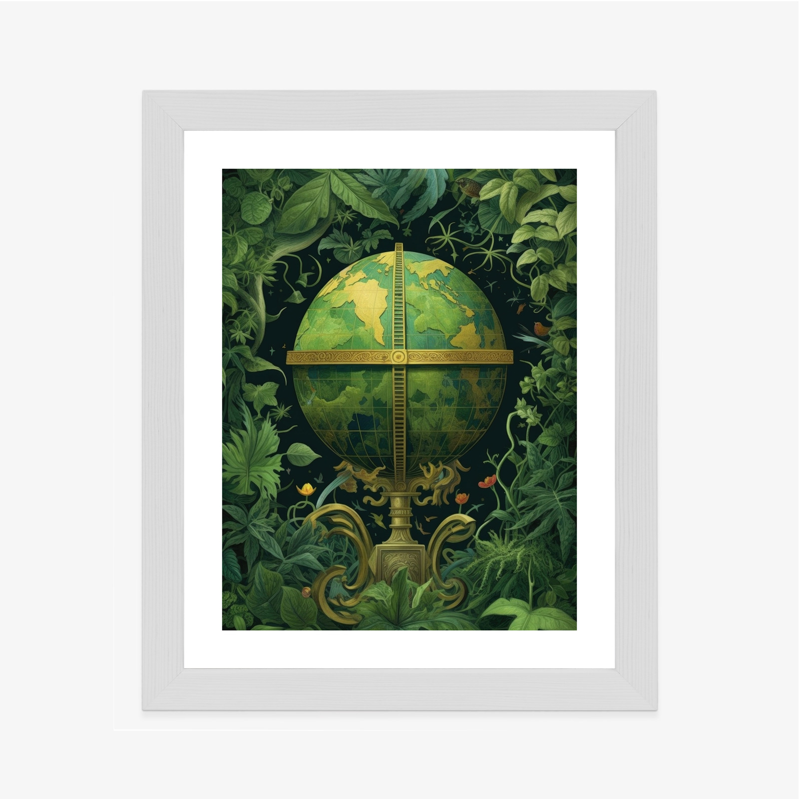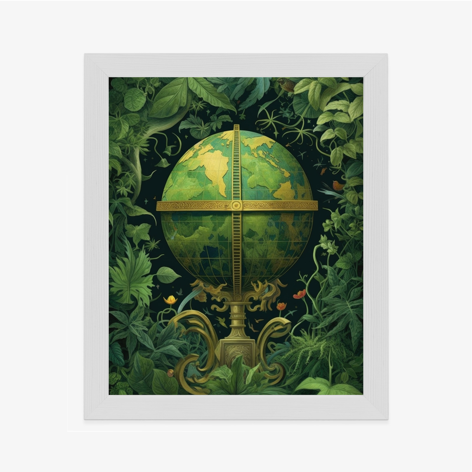 Poster Globus Mit Grünen Blättern Als Symbol Der Natur Rahmen Hölzern Farbe Weiß