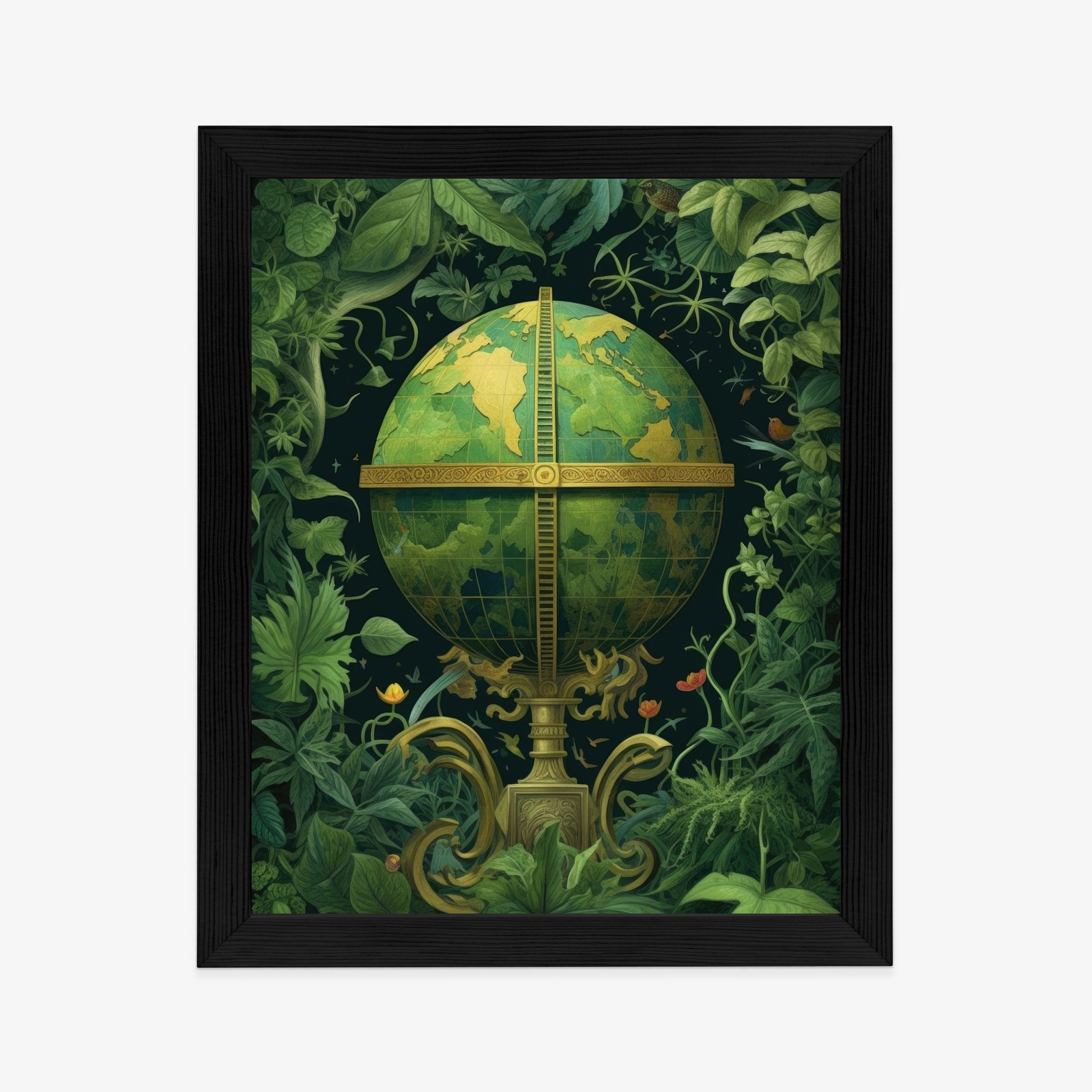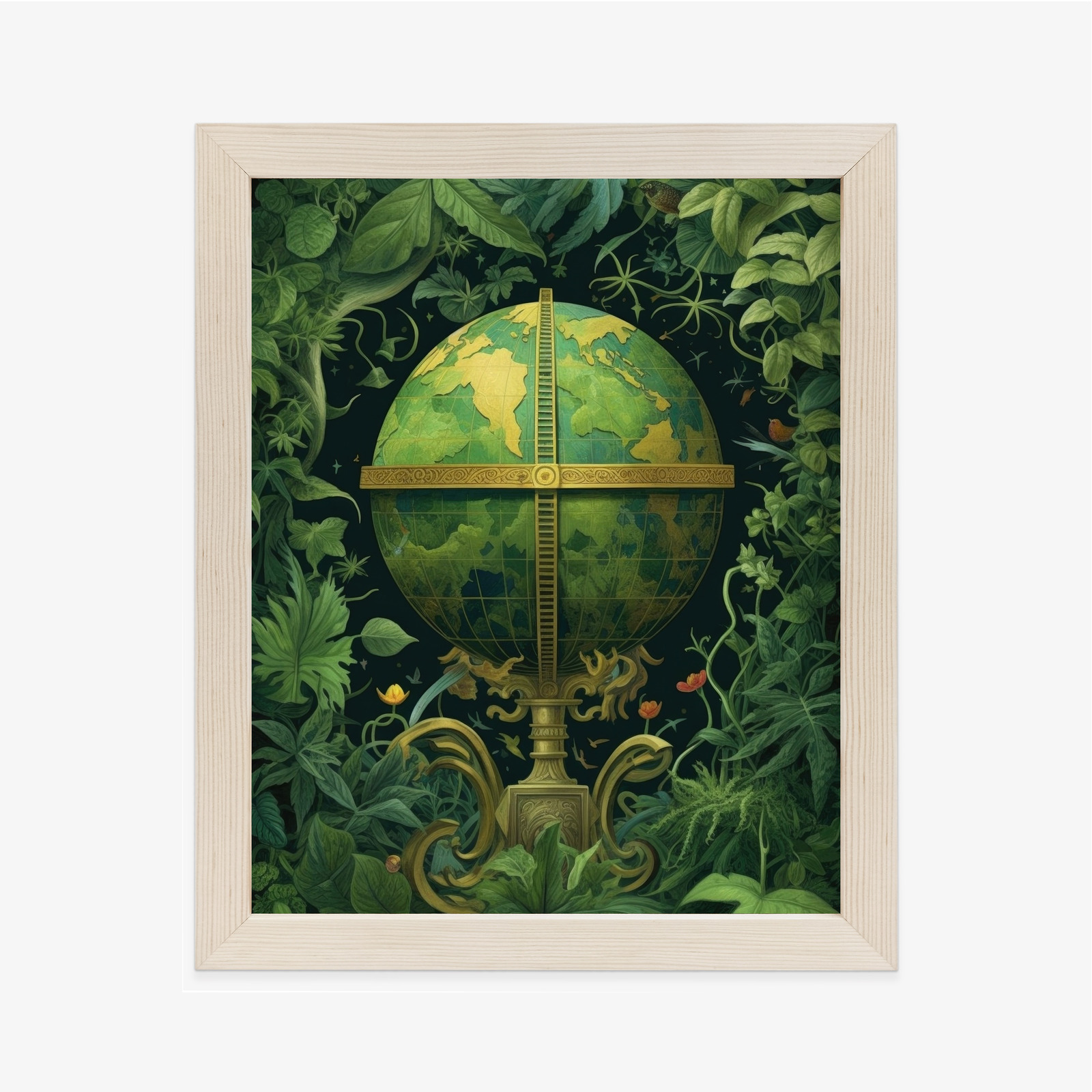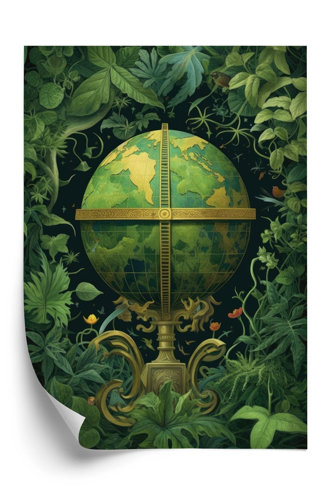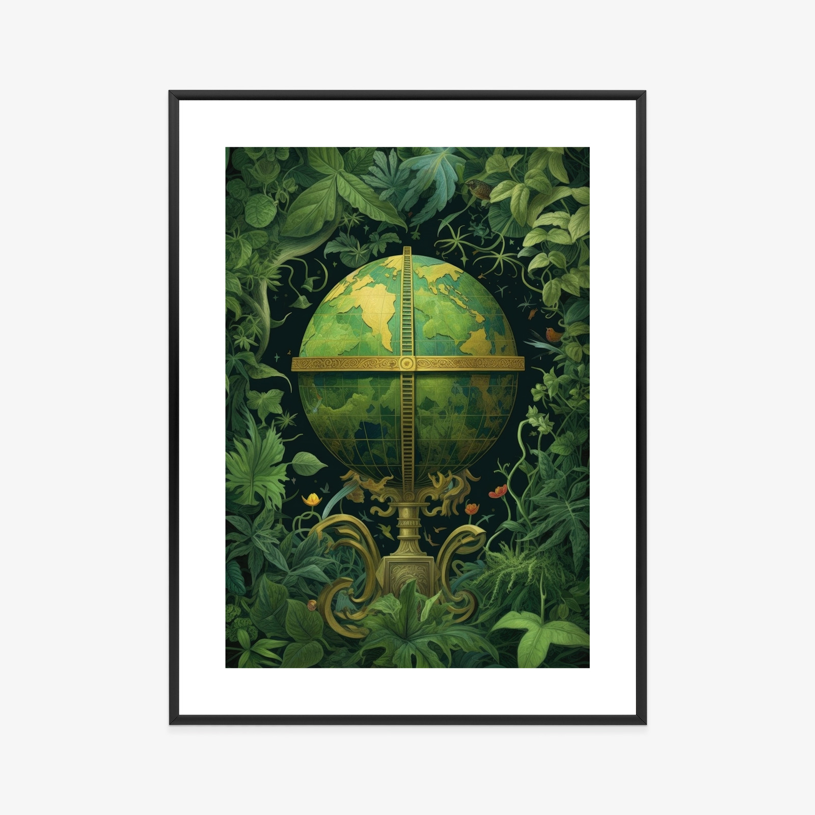 Poster Globus Mit Grünen Blättern Als Symbol Der Natur Rahmen Hölzern Farbe Weiß