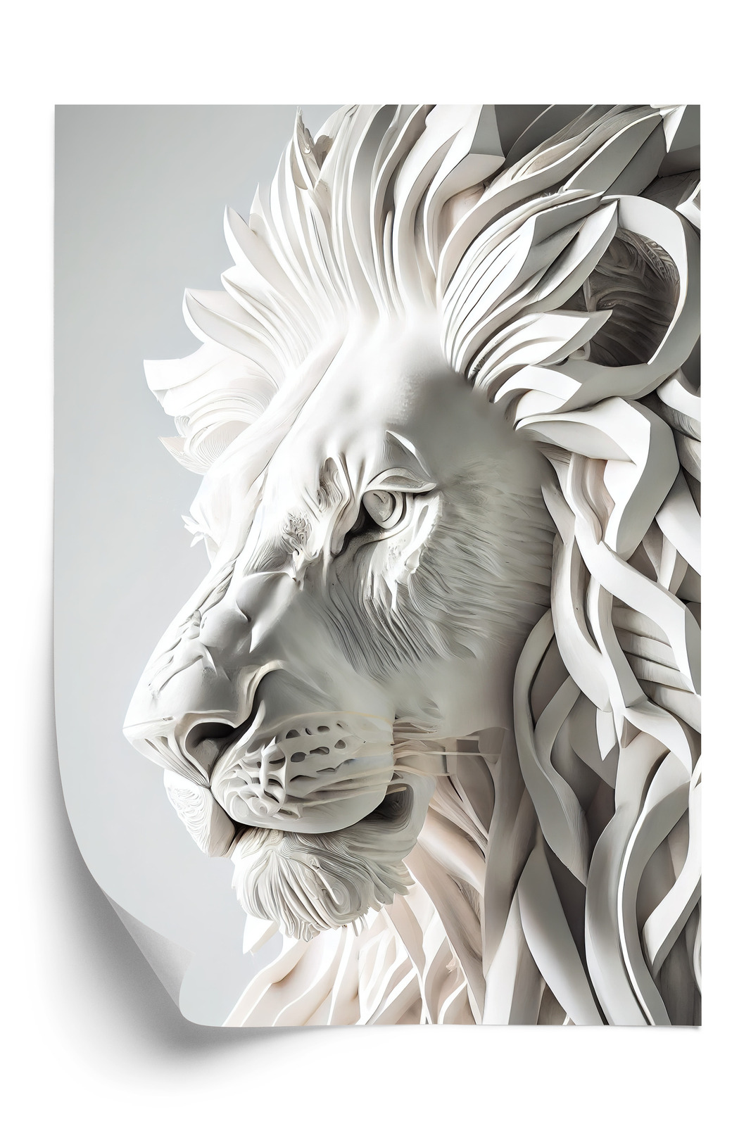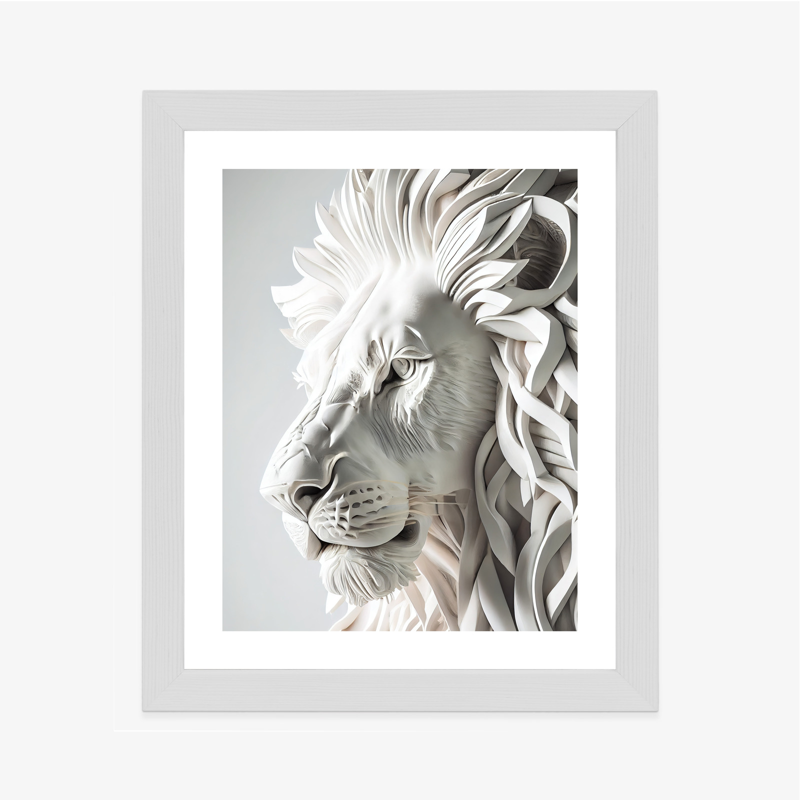 Poster Skulptur Eines Weißen Löwen Rahmen Holz Mit Passepartout Farbe Natürlich