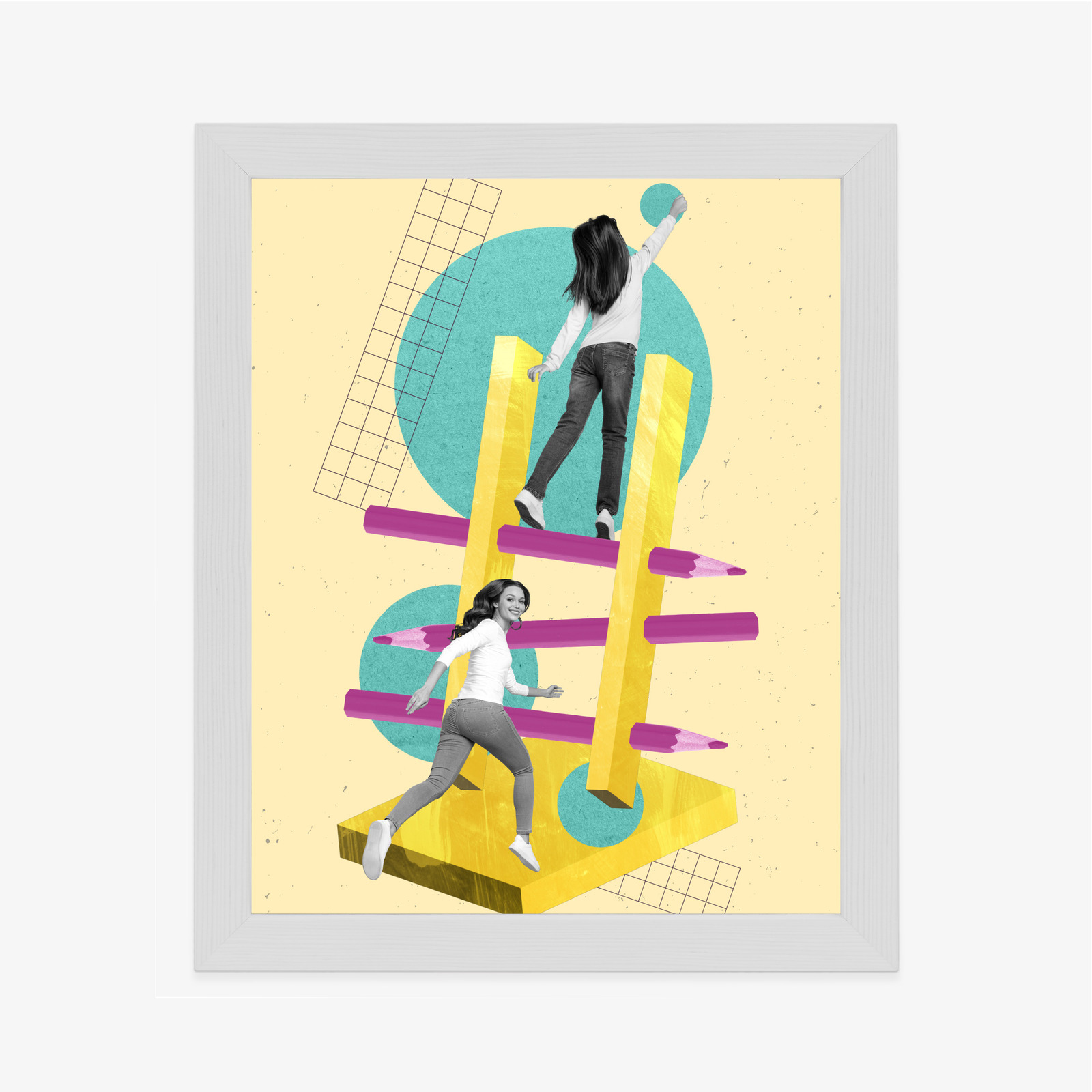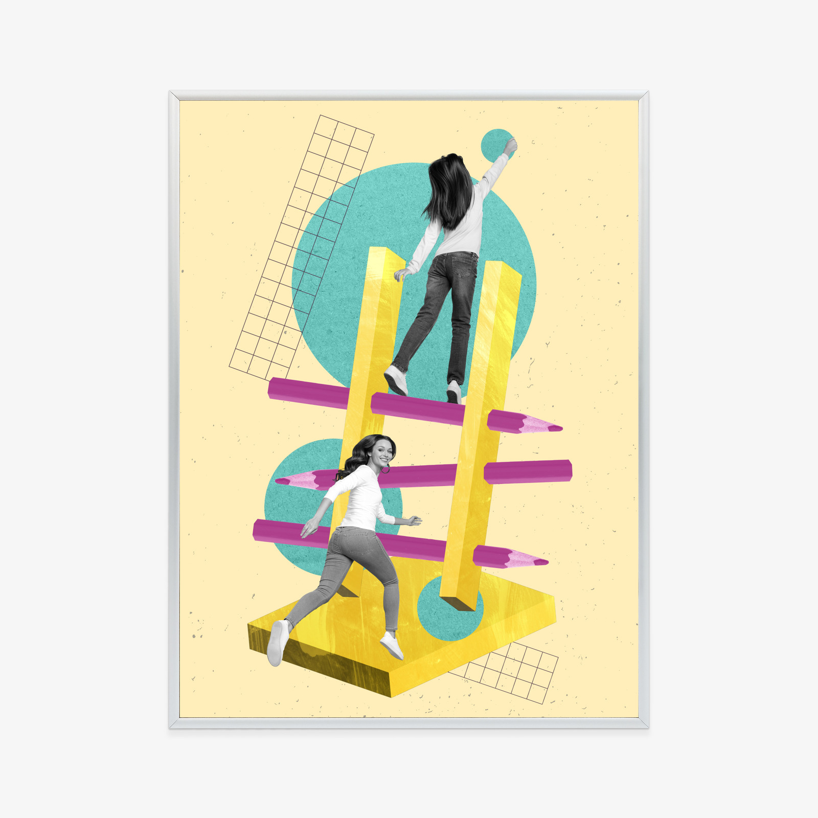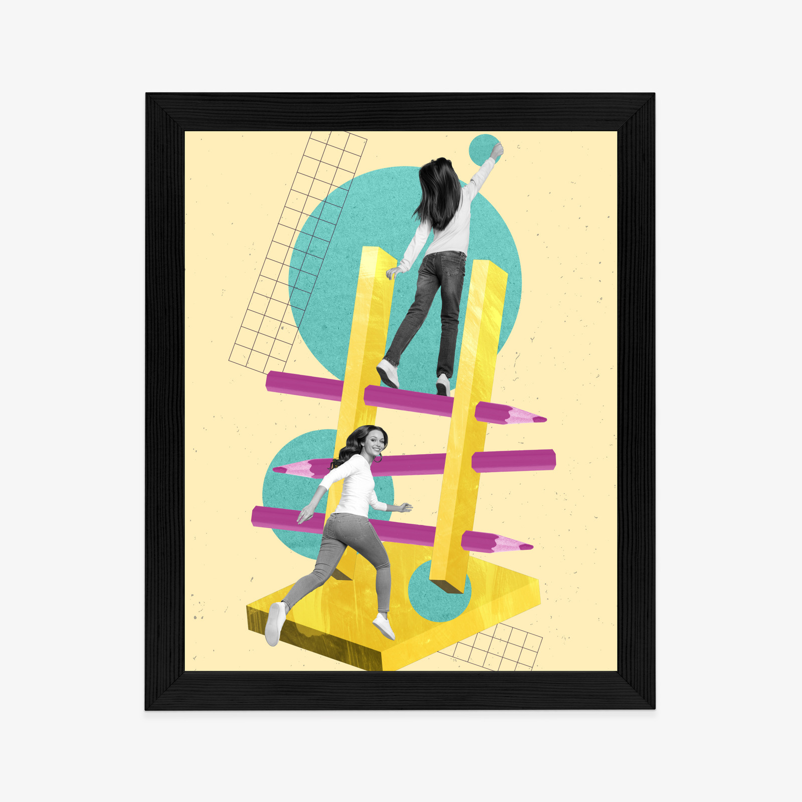 Poster Vertical Poster Picture 3D Collage Image Of Two Happy Persistent People Achieve Success Professional Growth Rahmen Aluminium Farbe Schwarz