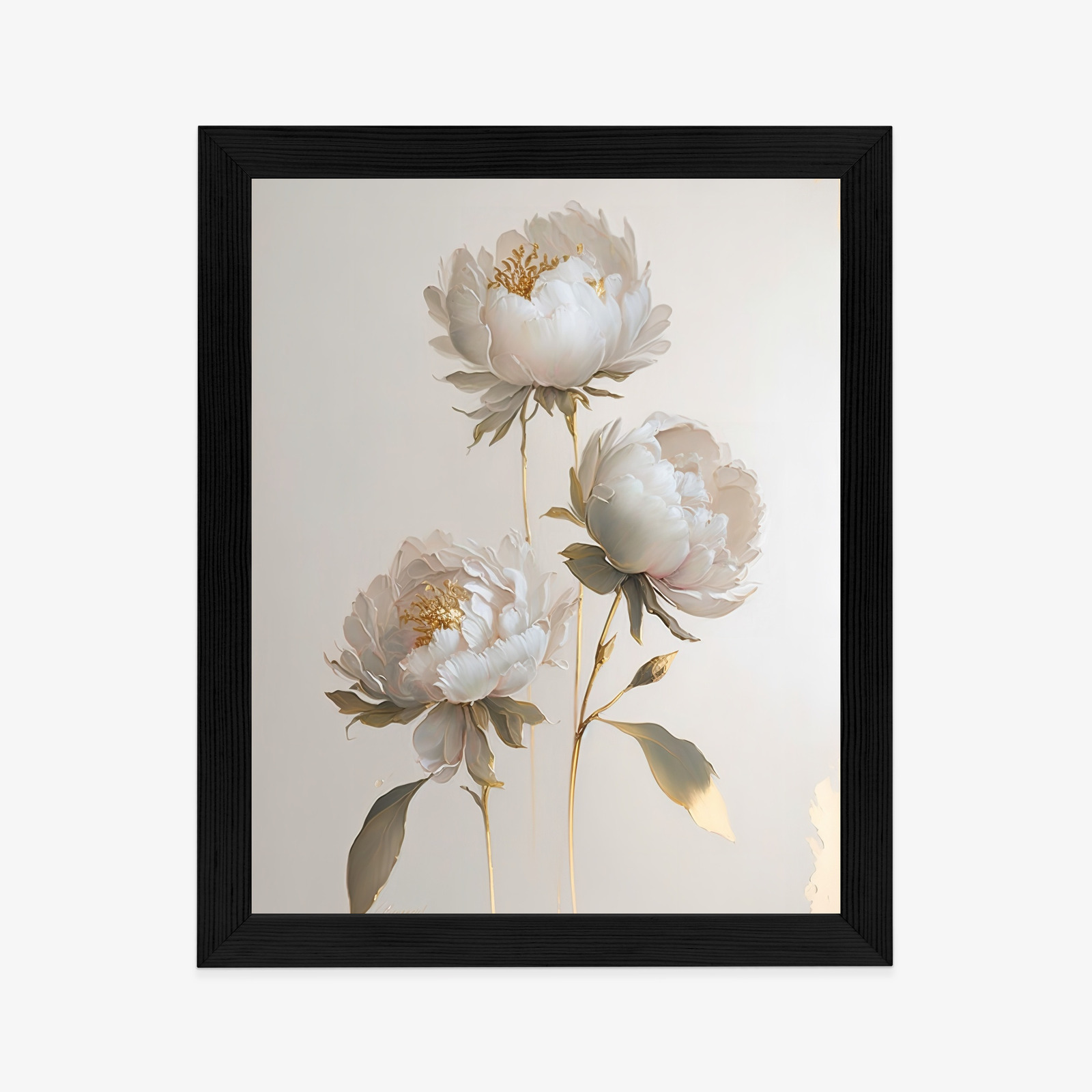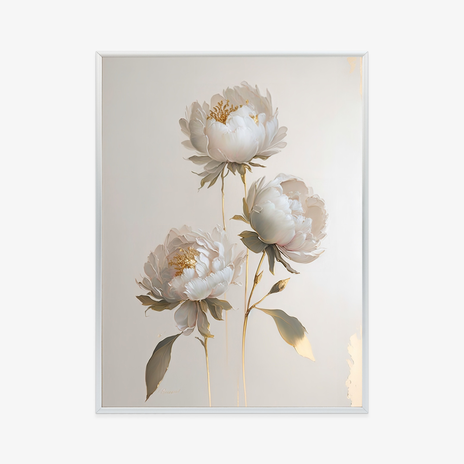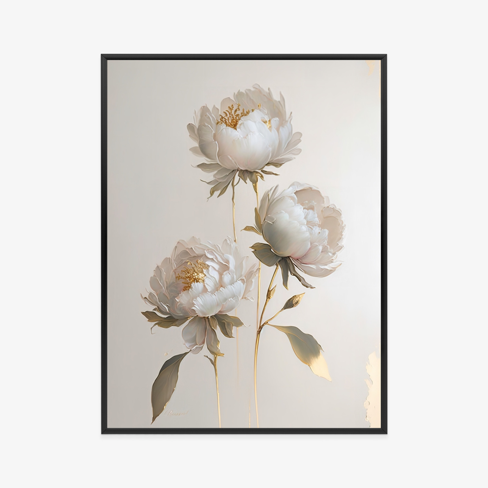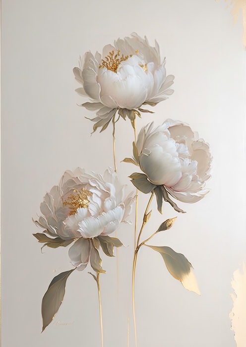 Schreibe die erste Rezension für „Poster Weiße Pfingstrosen Auf Hellem Hintergrund Und Goldenen Elementen Rahmen Holz Mit Passepartout Farbe Natürlich“