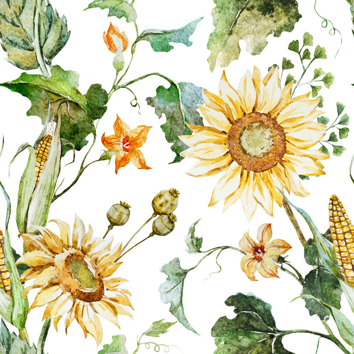 Tapete Auf Korridor-Sonnenblumen-Maisblättern 3D