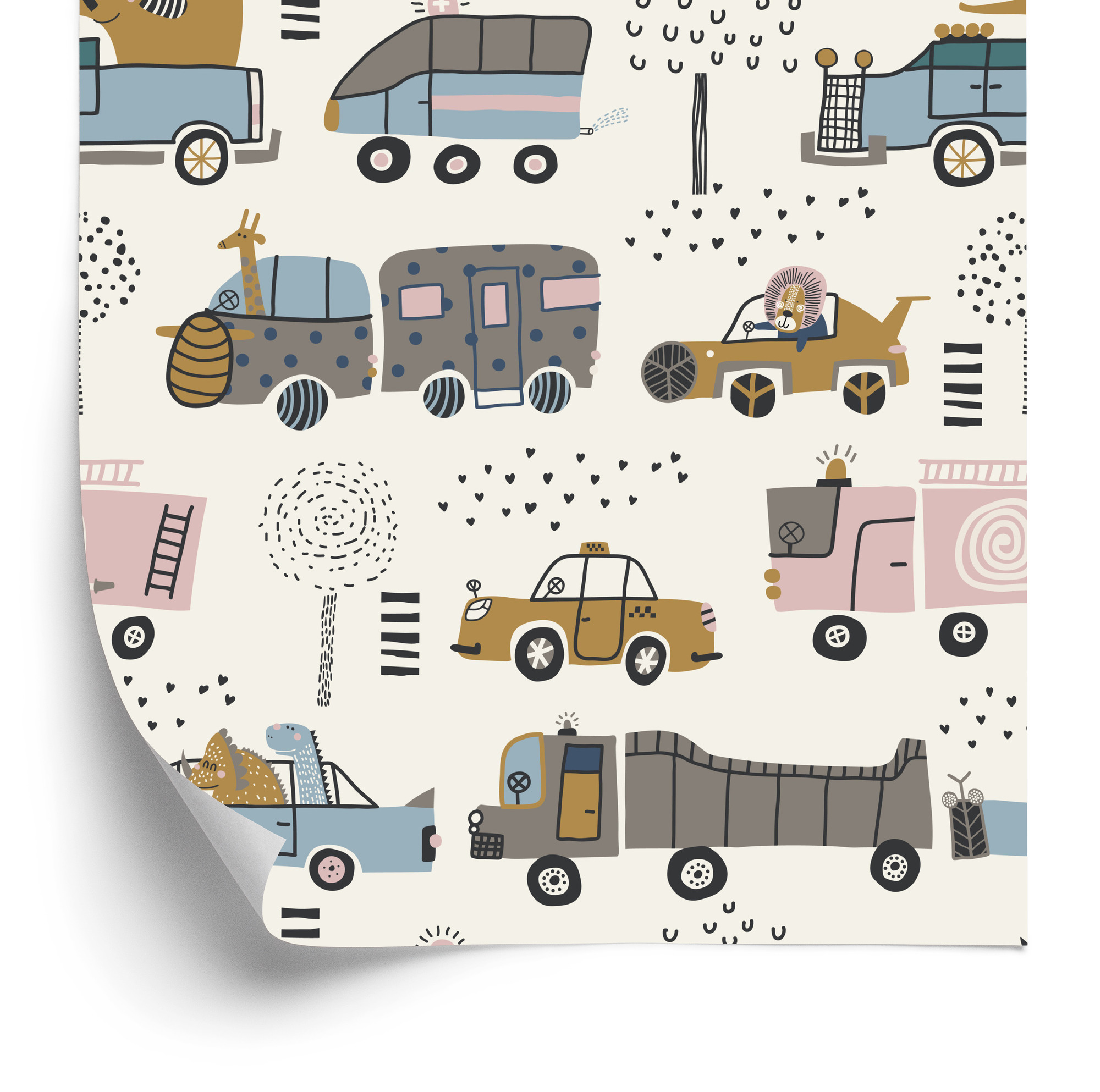 Tapete Autos Baum Tiere Für Babyzimmer