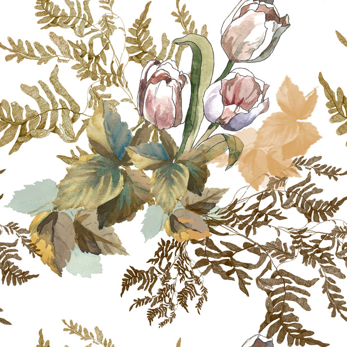 Tapete Blätter Und Tulpen Im Vintage-Stil