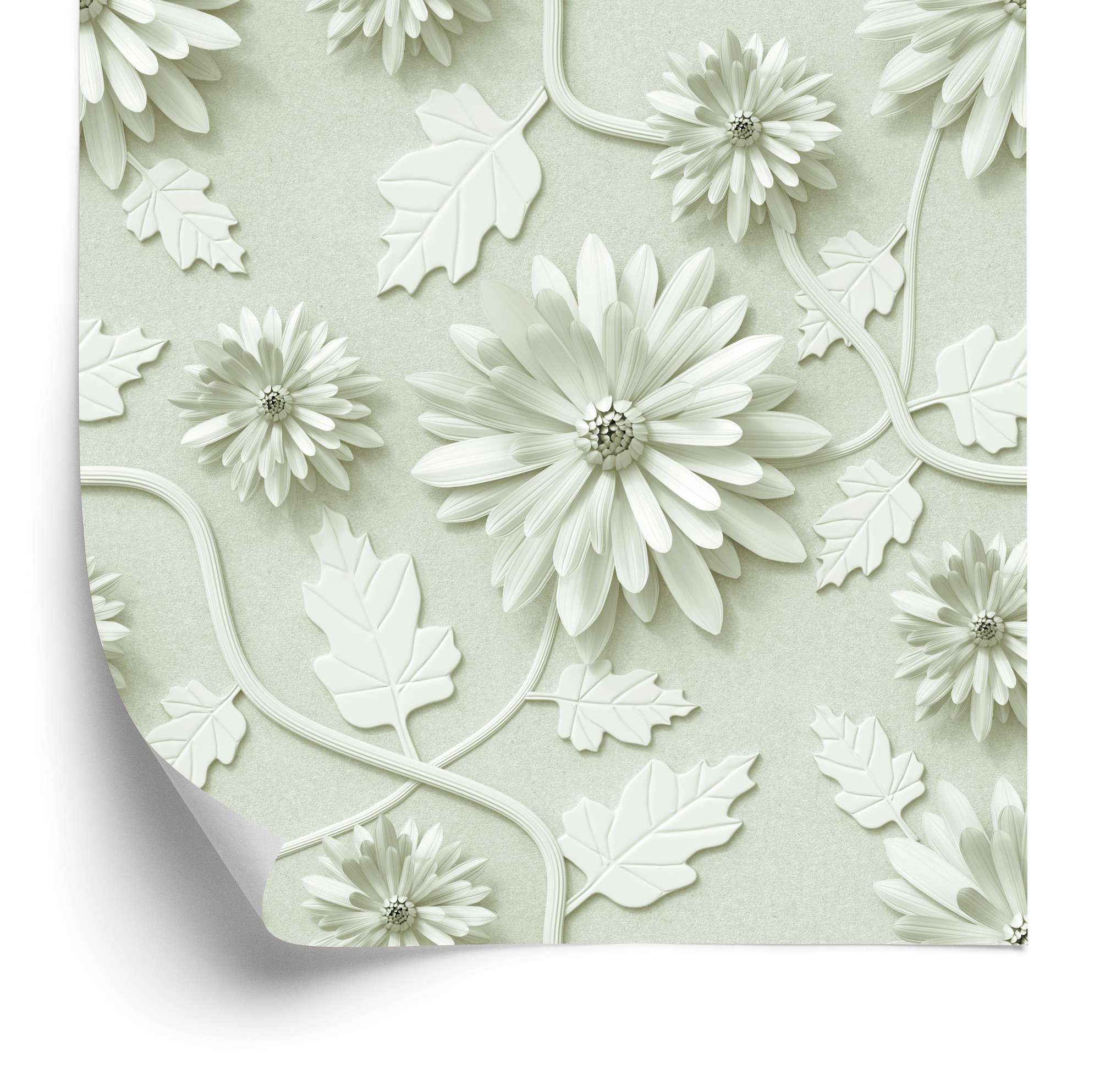 Tapete Dreidimensionale Chrysanthemen Mit Blättern