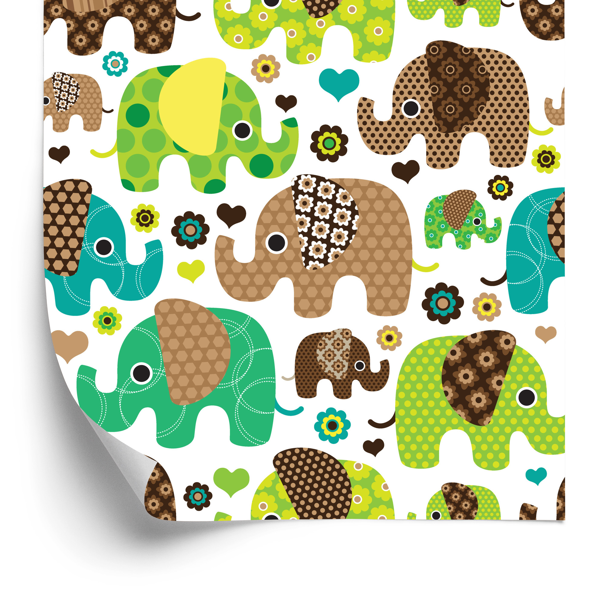 Tapete Für Kinder, Elefanten, Tiere, Blumen, Herzen