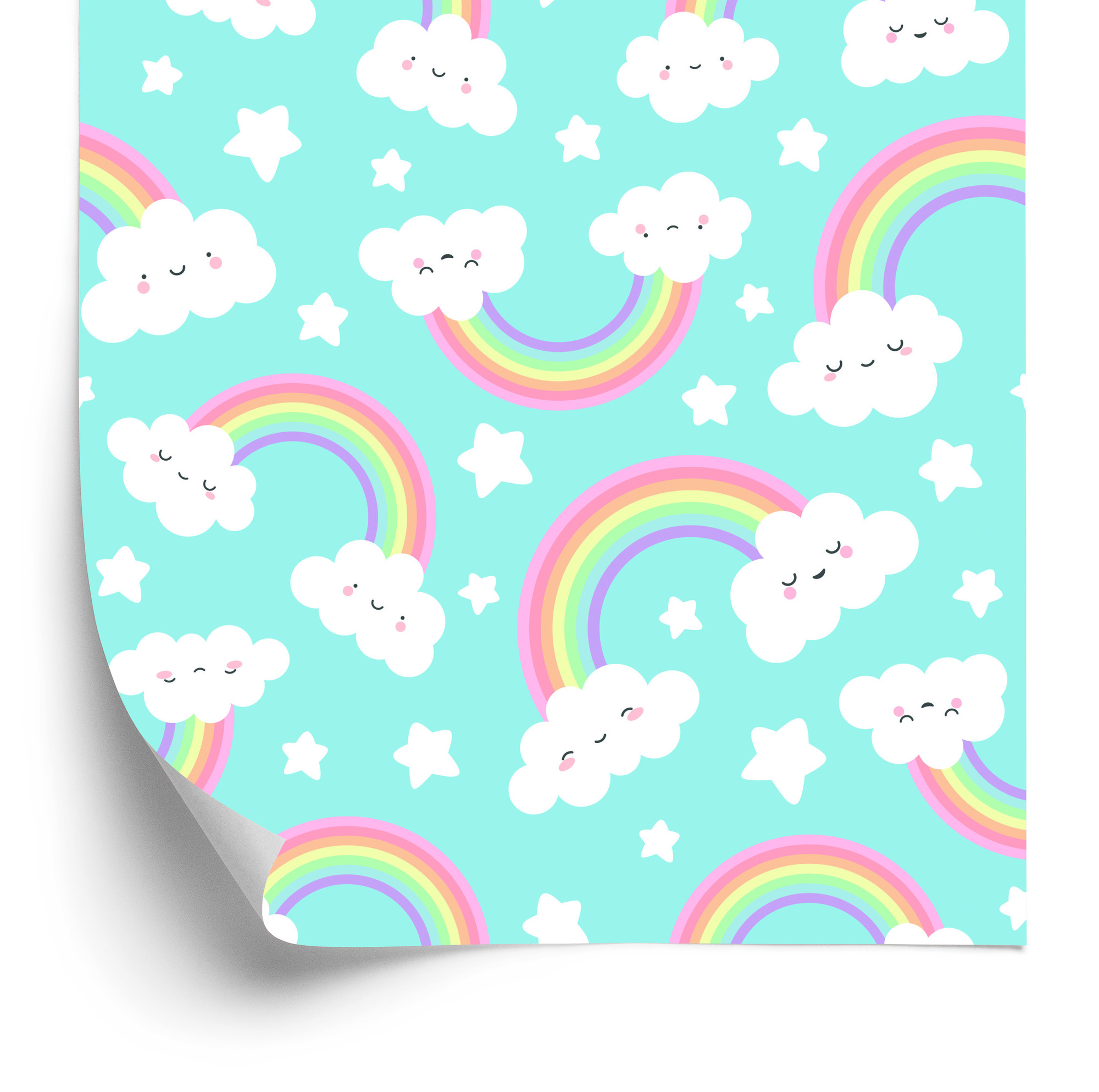 Tapete Für Kinder – Glückliche Wolken Und Regenbogen