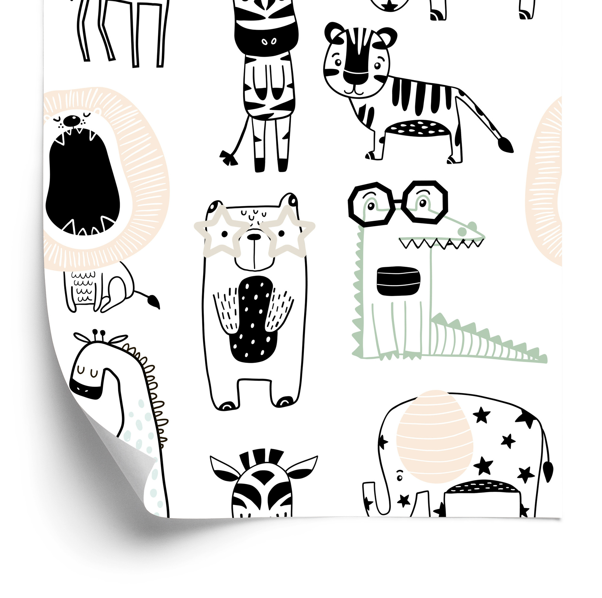 Tapete Für Kinder – Wilde Tiere Im Skandinavischen Stil